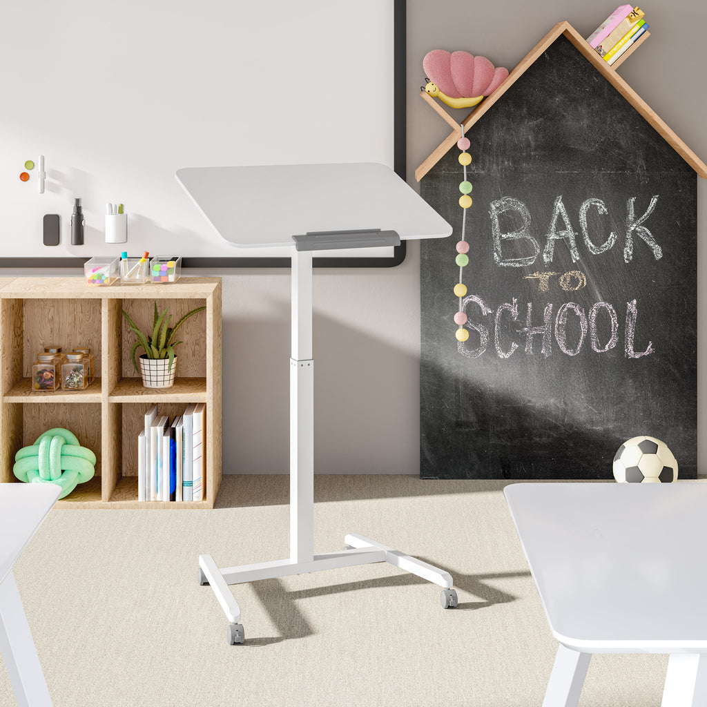 White airLIFT® Pneumatic Tilting Mobile Desk Cart