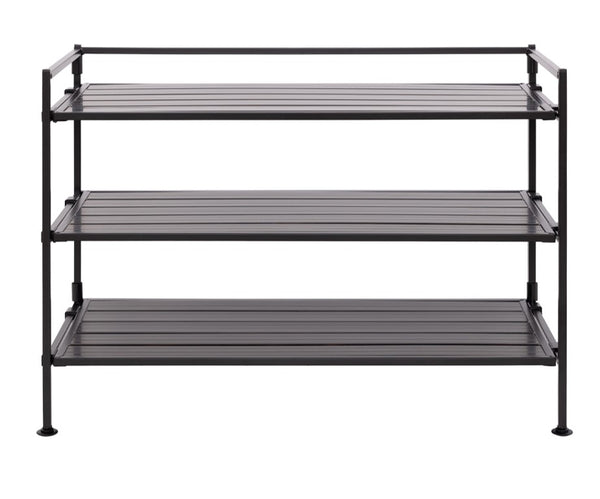 Stay organized with best selling Seville Classics' 3-Tier Resin Slat Utility Shoe Rack. Shelves hold approximately three pairs of shoes per tier.