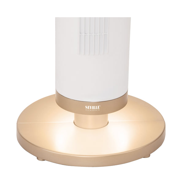 Maintain a refreshing atmosphere year-round with Seville Classics’ UltraSlimLine® Oscillating Tower Fan with Light. Designed for complete customization, our tower fan features 9 speed settings, 3 wind modes, a 12-hour shutdown timer, and automatic oscillation for wide, even airflow. The soft-glow LED light at the base offers 3 brightness settings to create ambient lighting. Enjoy ultra-quiet performance for a comfortably cool day or a restful night’s sleep.