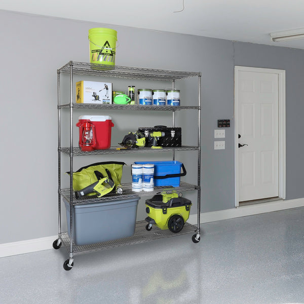 60 x 24 x 72, 5 Tier NSF Steel Wire Shelving Rack with Wheels